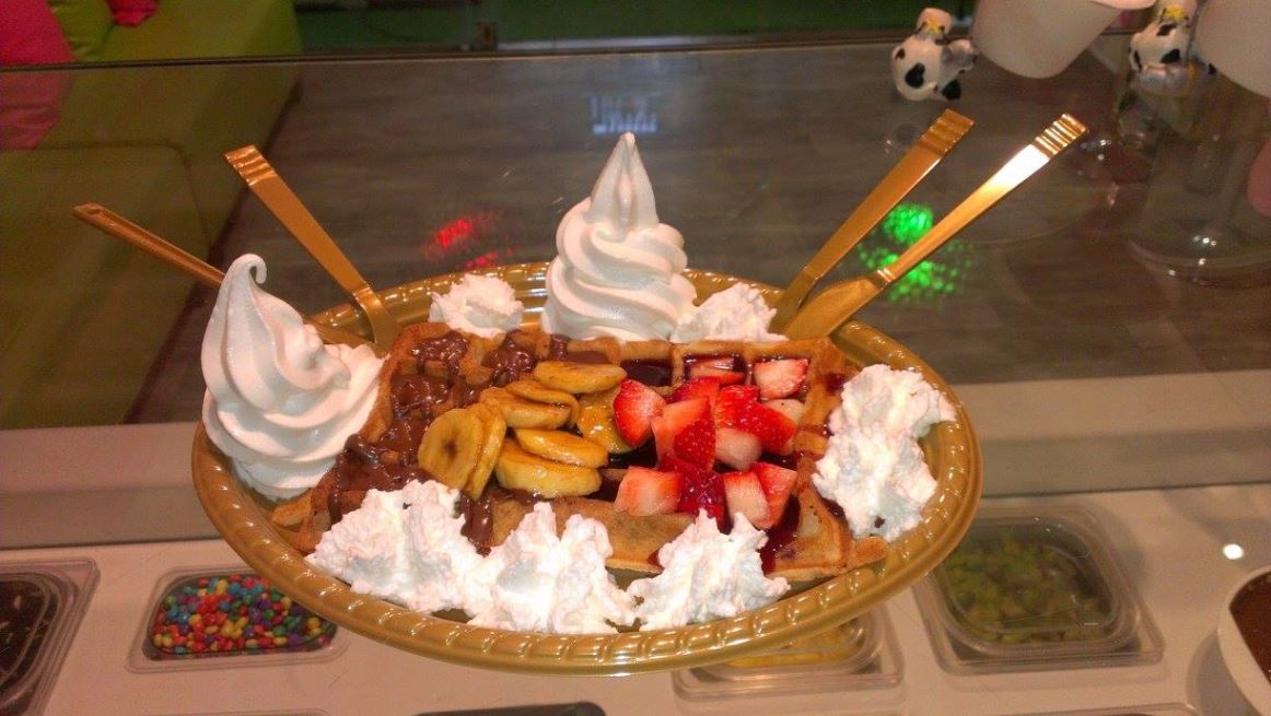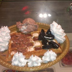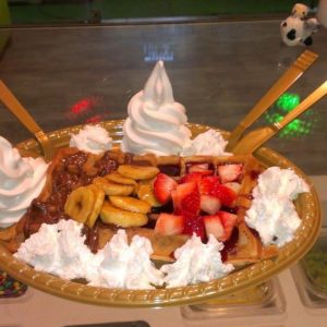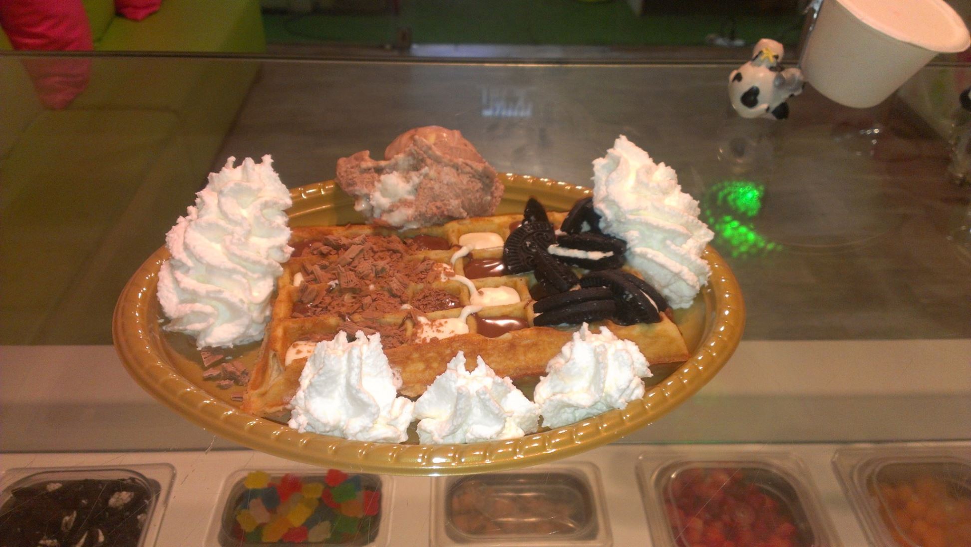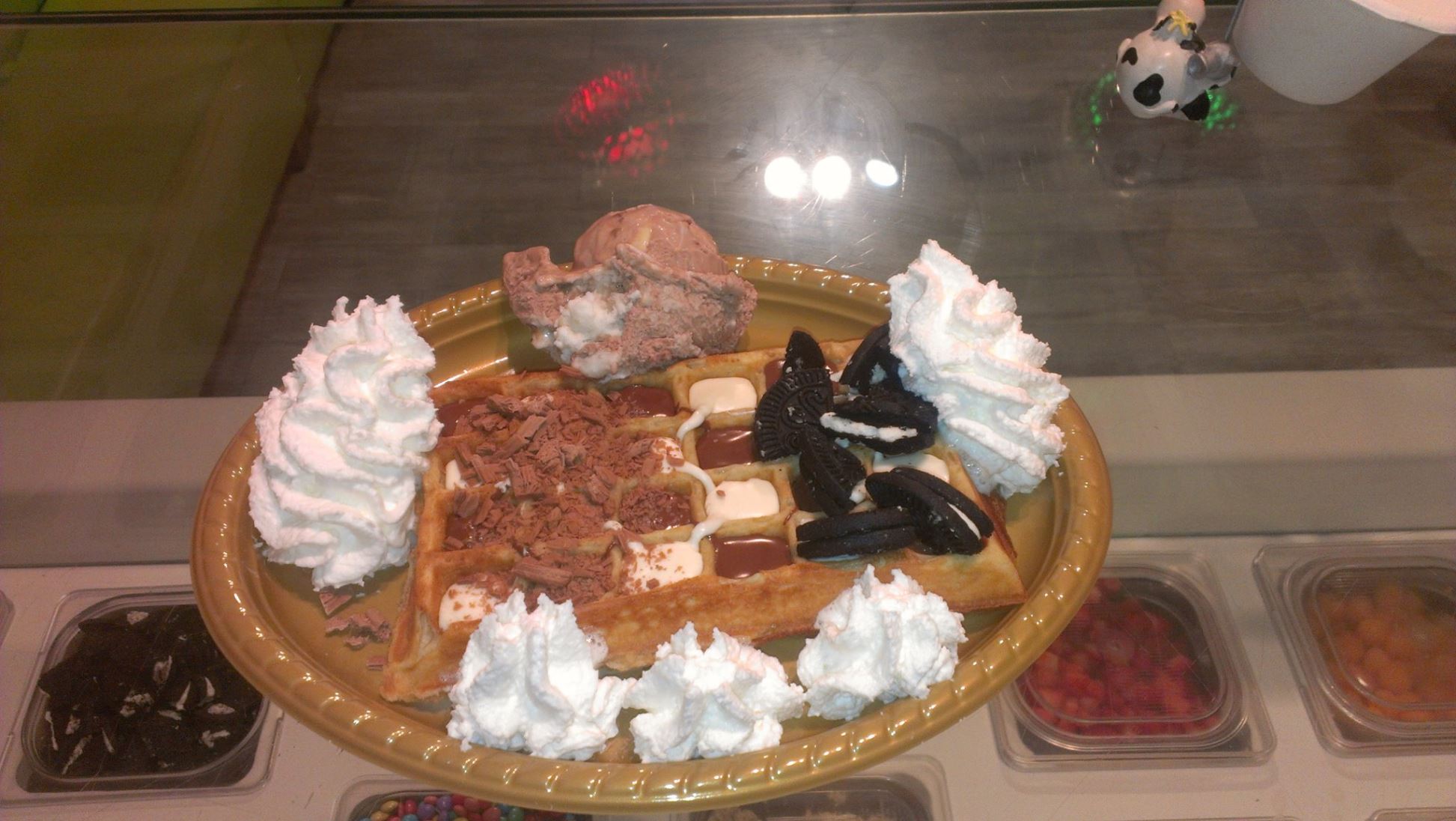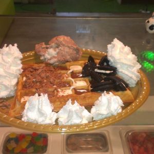 - וופל בלגי פינוקים הכולל שוקולדים/ סירופים, גלידה, קצפת ותוספות.
